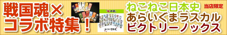オシャレでカッコイイ戦国武将グッズを買うなら戦国グッズ専門店『戦国魂』! 『徳川家康グッズ』『墨城印(御城印)』『墨将印(武将印)』から『ねこねこ日本史グッズ』まで5000アイテムの品揃え!東京スカイツリータウンソラマチ店や日本全国の城郭や歴史イベントの出店で、年間累計3万点の販売実績。戦国グッズ専門店「戦国魂」が圧倒的な品揃えで、スタイリッシュな戦国美を楽しむライフスタイルをお届けいたします。