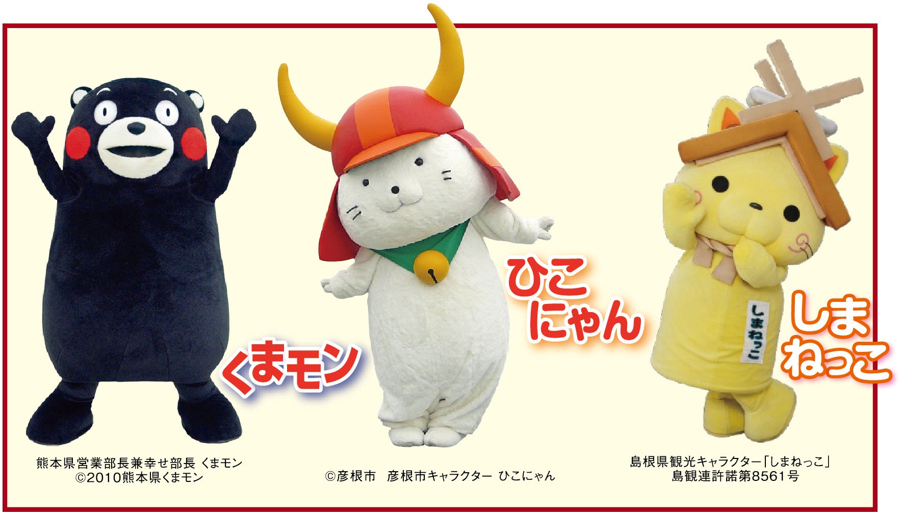 29日(日)には、島根県観光キャラクター「しまねっこ」、彦根市キャラクターひこにゃん、熊本県営業部長兼幸せ部長くまモンによる、コラボステージの開催が決定!人気キャラクターの競演をお楽しみいただけます。