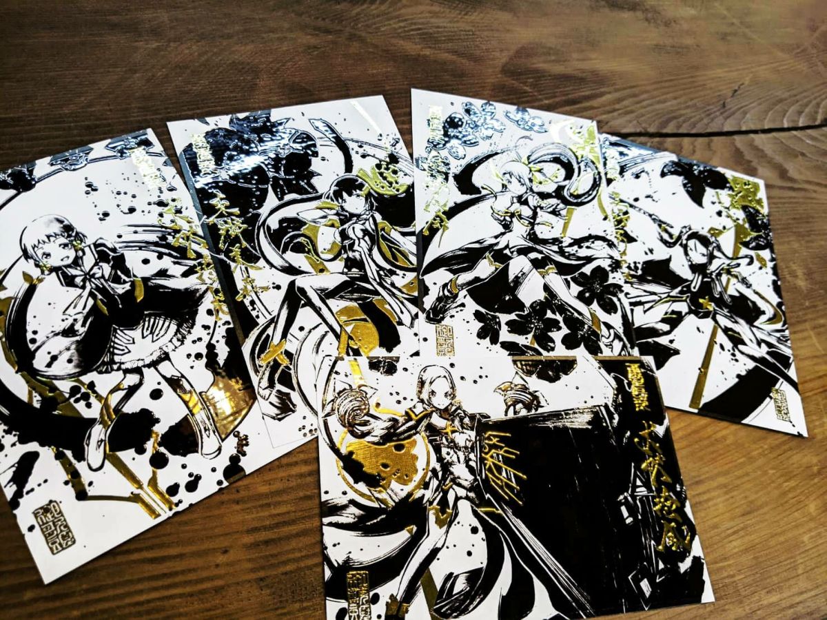 結城友奈は勇者である│三好夏凜│墨絵金箔ポストカード│