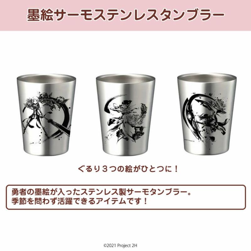 「結城友奈は勇者である」の墨絵キャラクター3名が入ったサーモステンレスタンブラー。