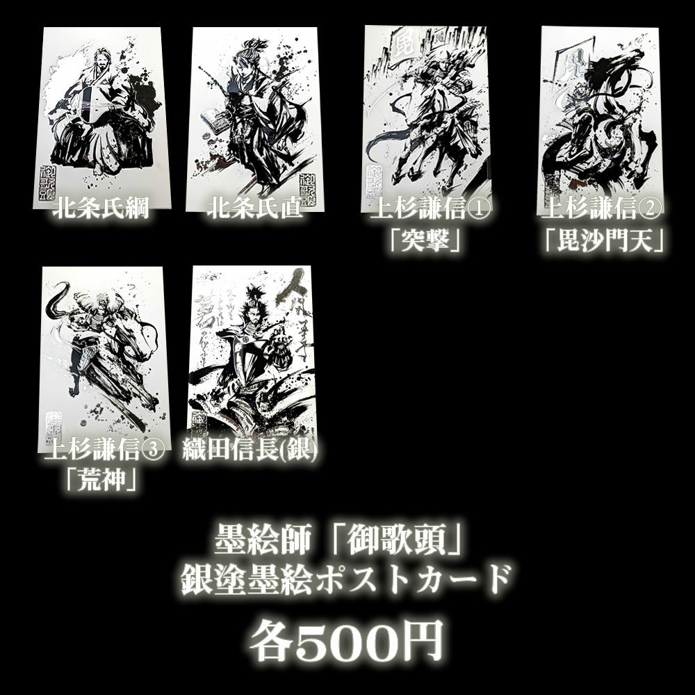 『墨絵師御歌頭』銀塗墨絵武将ポストカード