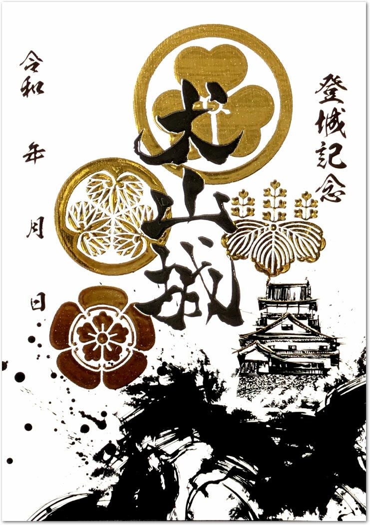 墨絵師御歌頭さんによる連作『墨城画』が入った戦国魂オリジナルの御城印です。 金箔押し仕様の特別版となります。 ■サイズ 105㎜×148㎜ ■厚紙(日本製) 御城印としてお楽しみいただけるほか、ポストカードサイズのフレームに入れてお楽しみいただけます。