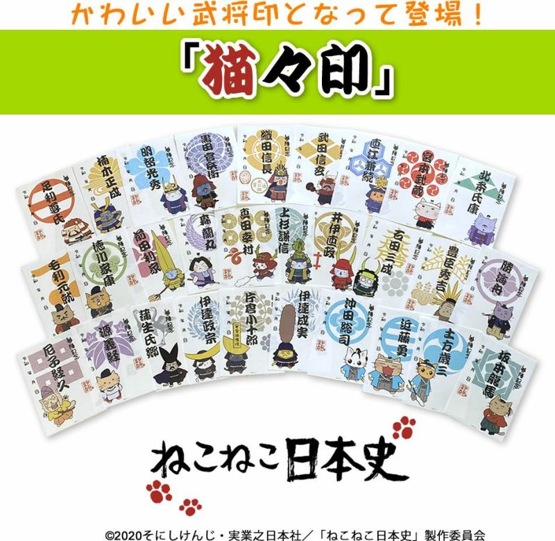 ねこねこ日本史のキャラクターが入った御朱印です。 ●サイズ 本体:横10.5cm×縦14.8cm ●素材 本体:和紙 包装:PP袋、紙シール ©2020そにしけんじ・実業之日本社/「ねこねこ日本史」製作委員会