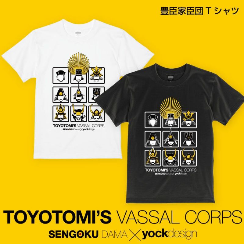 豊臣秀吉公とその家臣団の顔アイコンが並ぶシンプルなデザインのTシャツです。