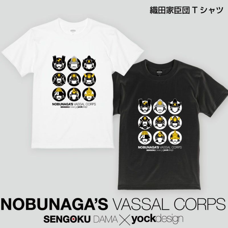 織田信長公とその家臣団の顔アイコンが並ぶシンプルなデザインのTシャツです。