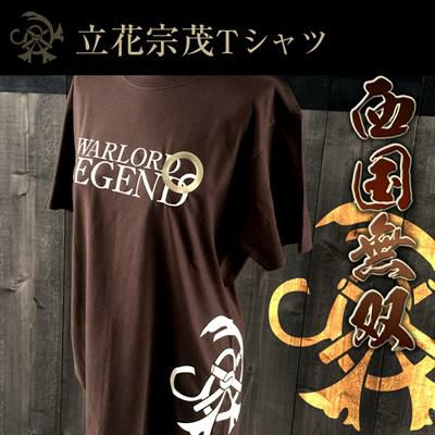 立花宗茂のトレードマークである黒漆塗頭形兜をモチーフにしたTシャツが登場!フロントには「伝説の武将」という意味の英字をデザイン。