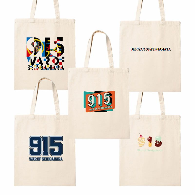 9月15日戦国魂16周年記念としてデザインしたトートバッグ。 関ヶ原のキーナンバーである915。日常のファッションとして楽しもうというコンセプト。