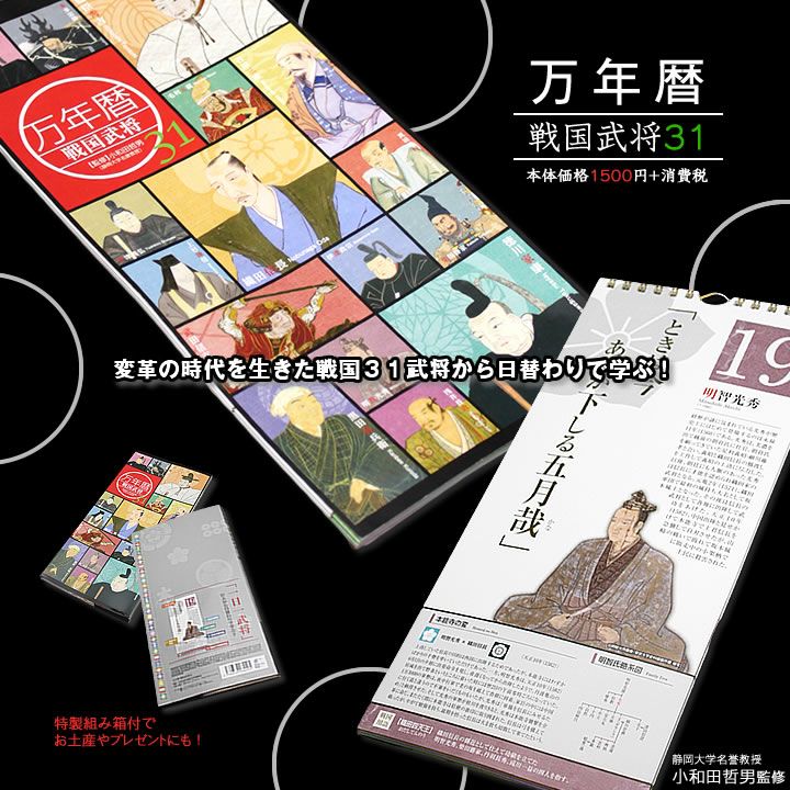他の画像を見る 【リニューアル】万年暦~戦国武将31~[第2編]日めくりカレンダー(特製組み箱入り) 価格 ¥ 1,650 税込 歴史に名を刻んだ戦国猛者31人の魂の言葉を略歴とともに収録 日が楽しくなる、日めくりカレンダー