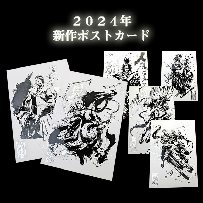 戦国魂の墨絵師『御歌頭』先生の大迫力武将墨絵のポストカードが新たに「銀塗」バージョンで登場!