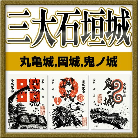 他の画像を見る 御城印『墨城印』★日本三大石垣城セット(丸亀城,岡城,鬼ノ城) 価格 ¥ 990 税込 会員 ¥ 880 税込 墨絵師御歌頭による御城印です。 日本三大石垣城 丸亀城,岡城,鬼ノ城の3城セット。